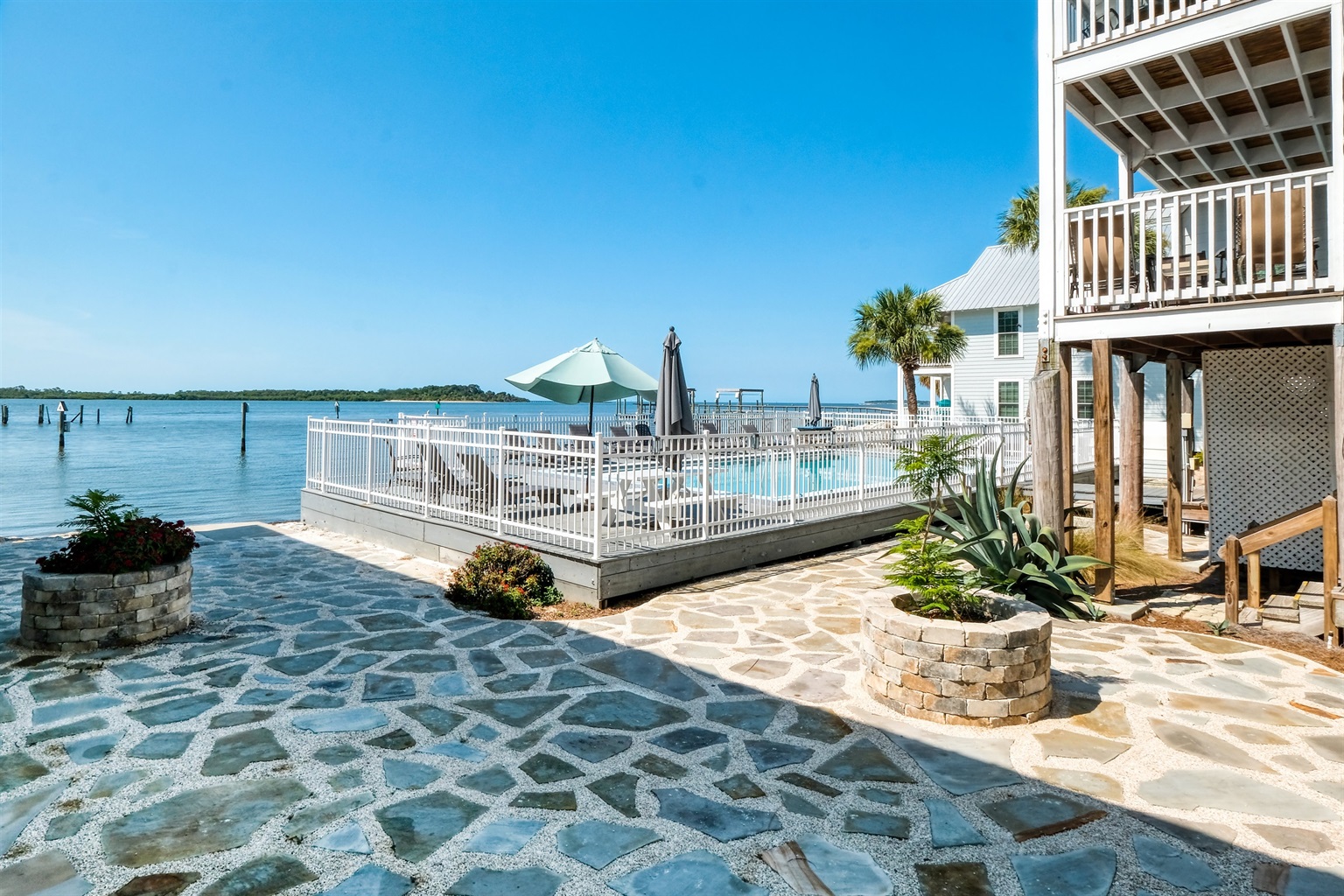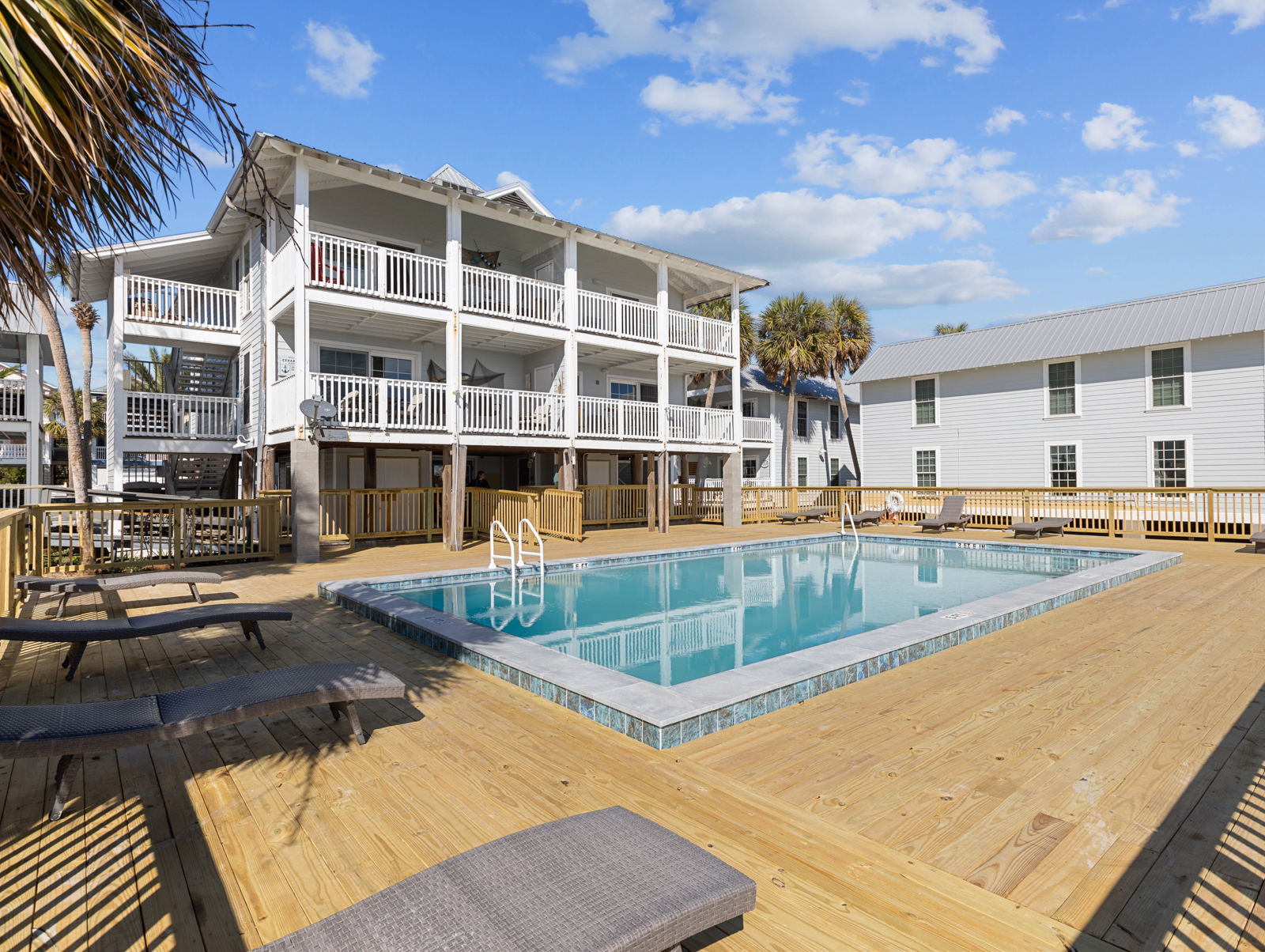 1 Bedroom • 1 Bathroom 1 Bath • Sleeps 1-4Nestled against the backdrop of Florida’s nature coast, the Island Place is a romantic getaway showcasing the natural beauty and serenity of a secluded tropical isle. Our beautiful condos are located in Cedar Key directly on the Gulf of Mexico amid a true nature preserve, swaying palms and warm Gulf breezes. Renew the spirit and stir the soul in a paradise of tropical splendor. Walk out your unit and you will find a pool located directly on the Gulf! Grills are park style and at end of complex. Bring utensils, charcoal, grill brush and lighter fluid.