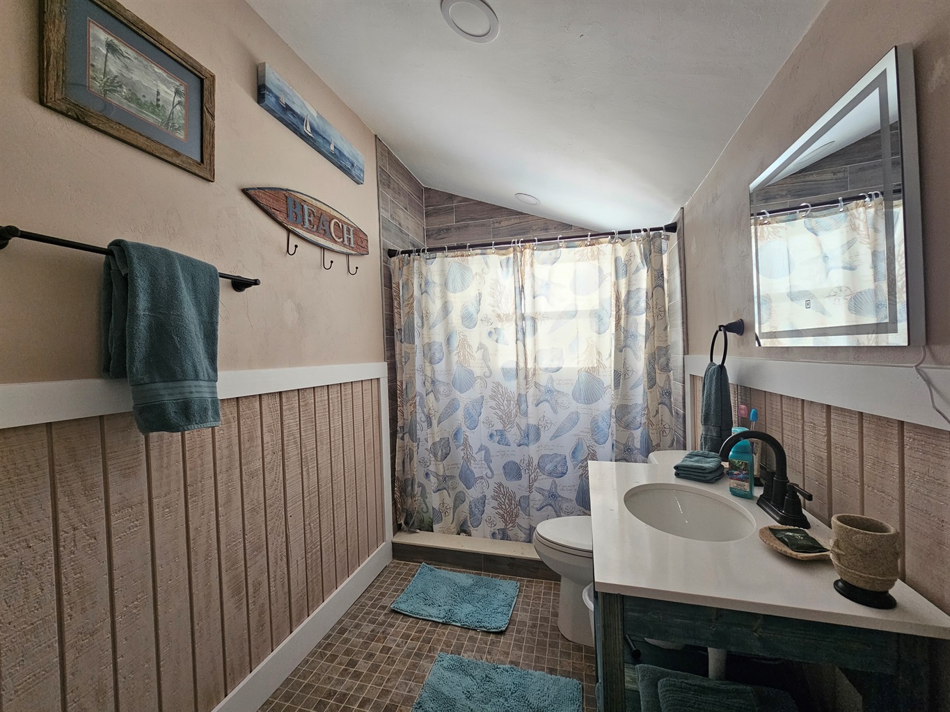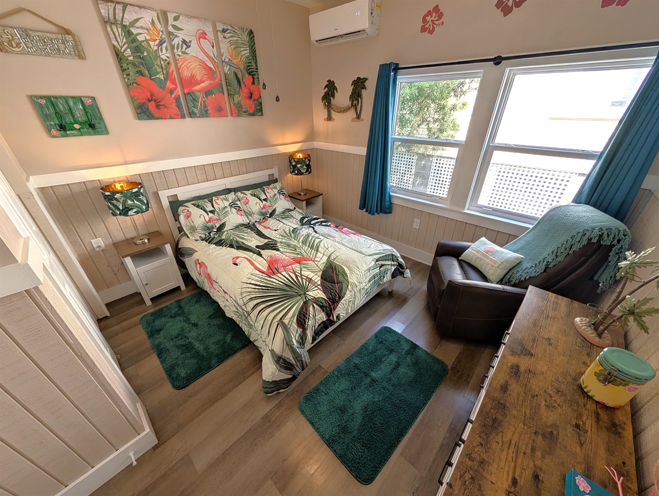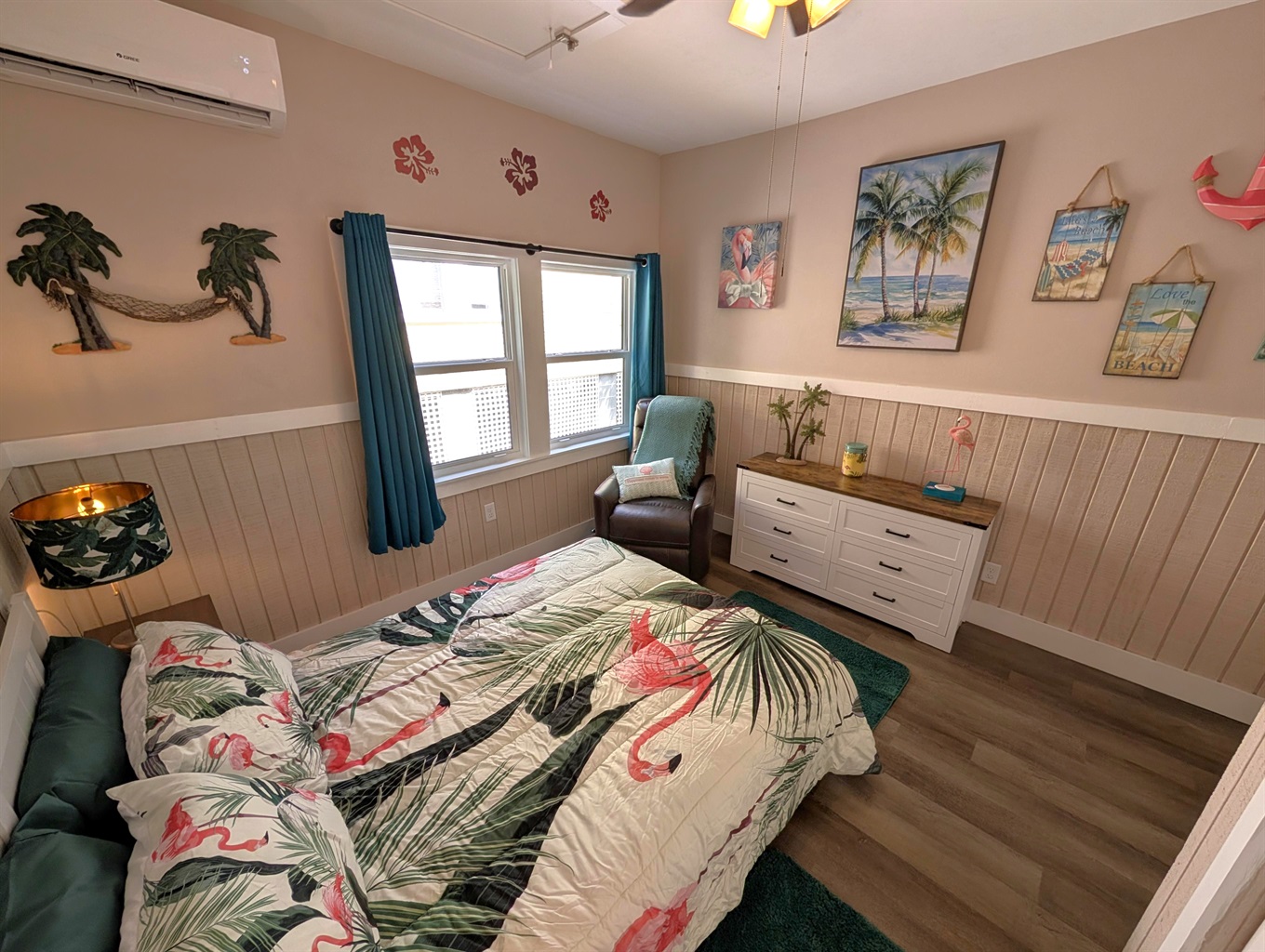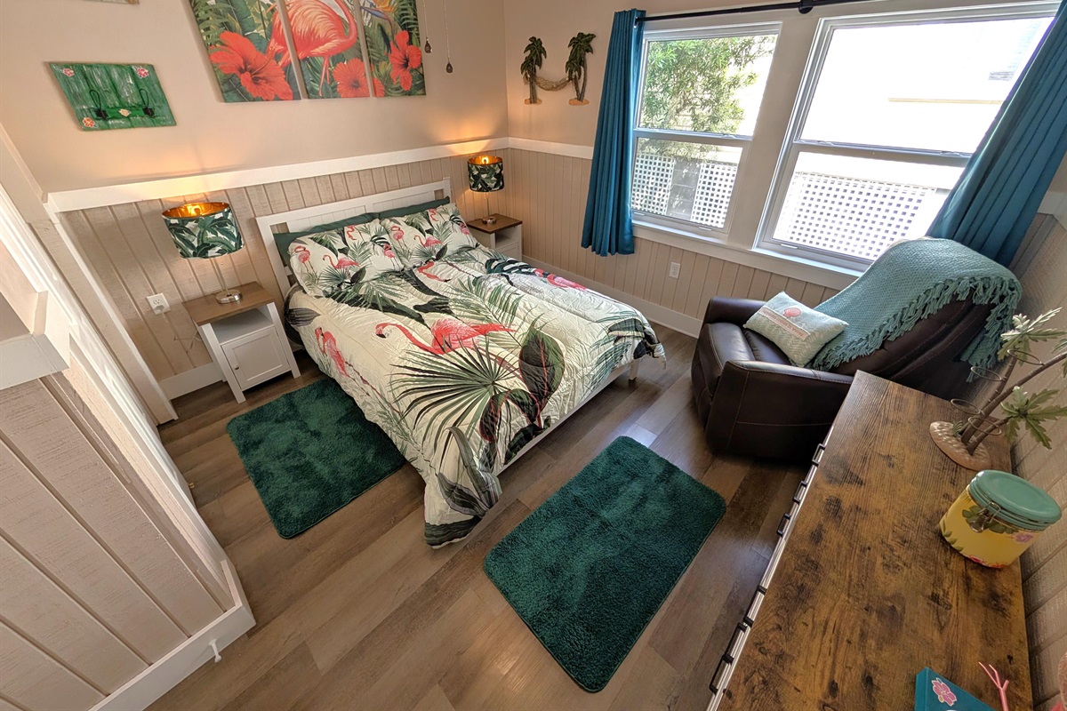 Restful Retreats: Our bedrooms continue the serene seafoam theme with premium linens and beach-inspired art.